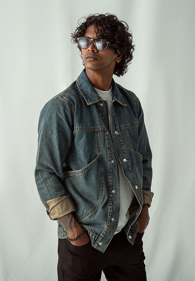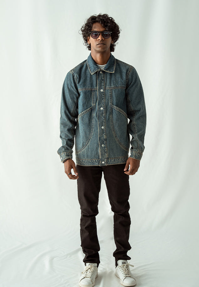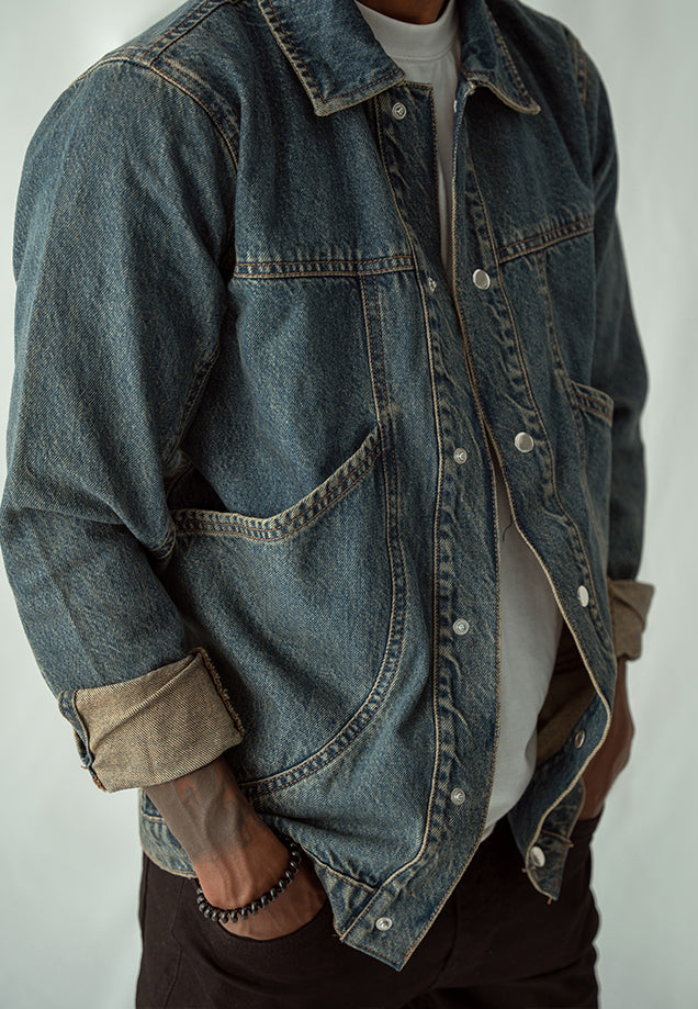 90'S Inspired Denim Jacket - Dark Green Over Dye