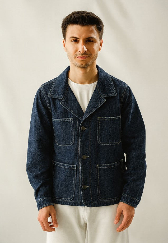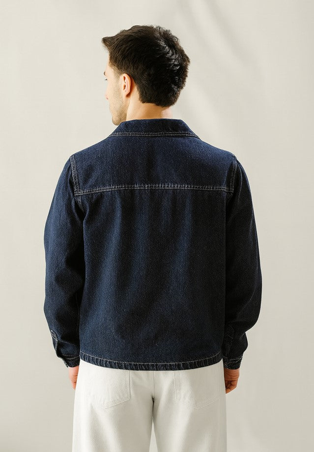 Denim Jacket With Contrast Thread - Wrinkle Wash