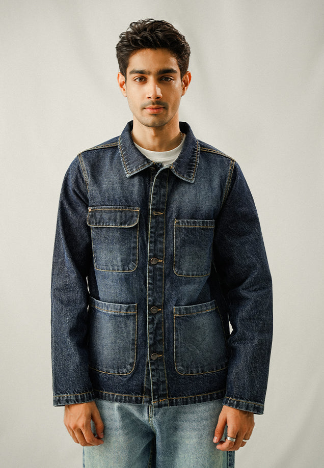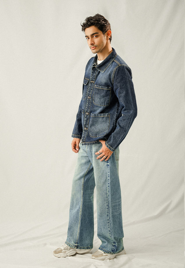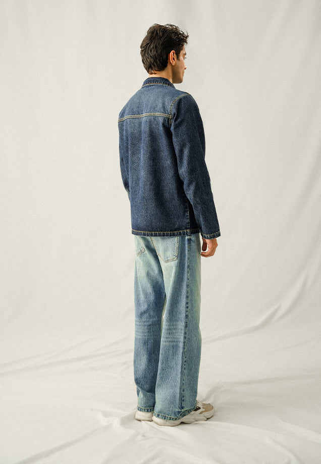 Multi Pocket Over Shirt - Washed Out Denim Blue
