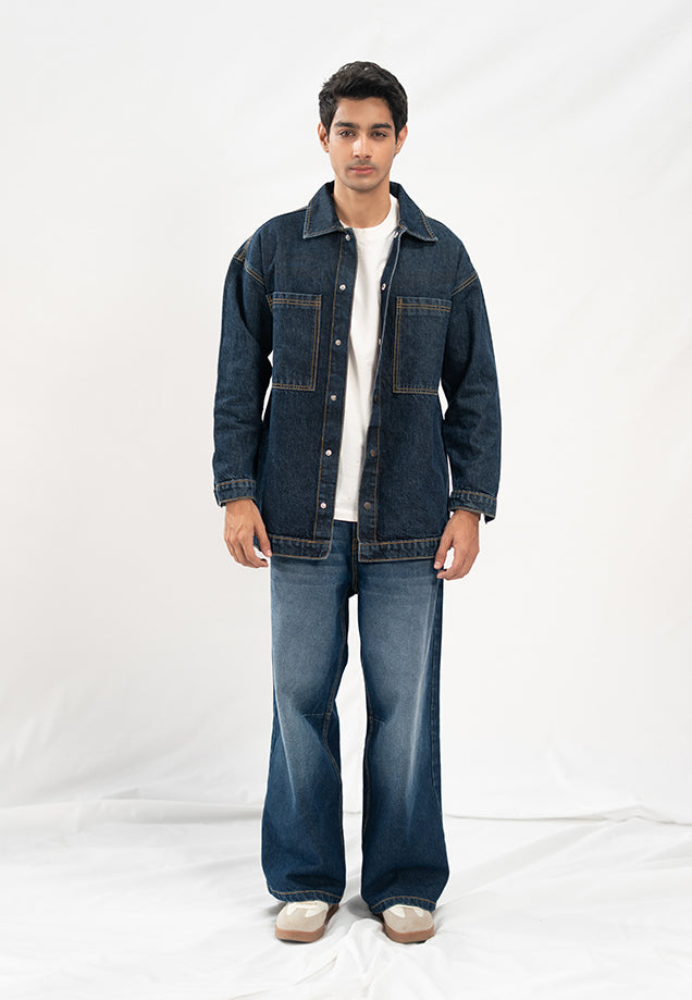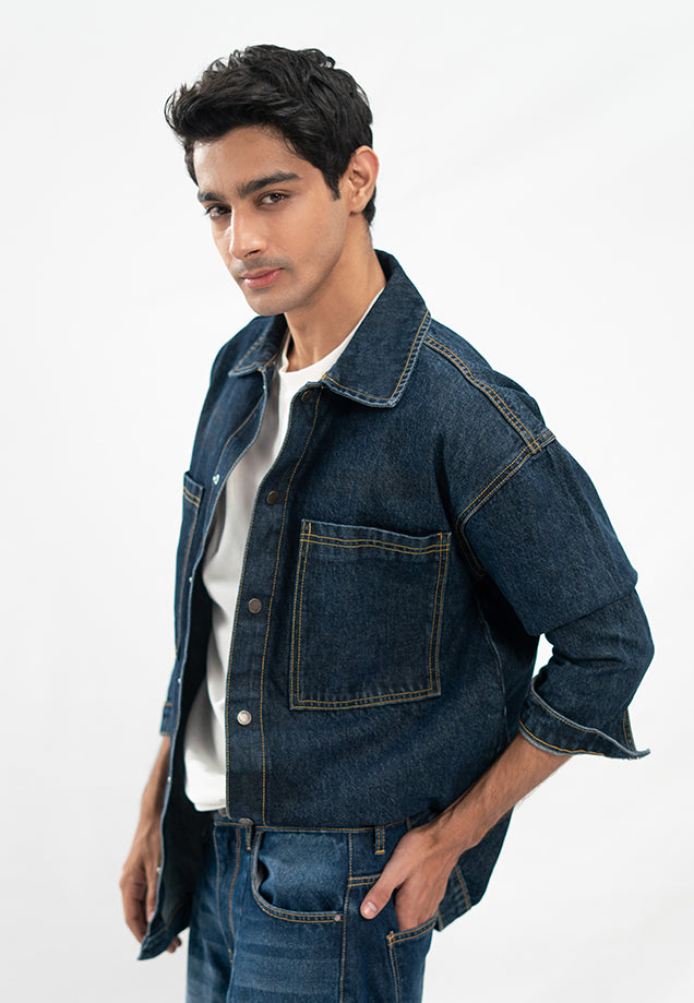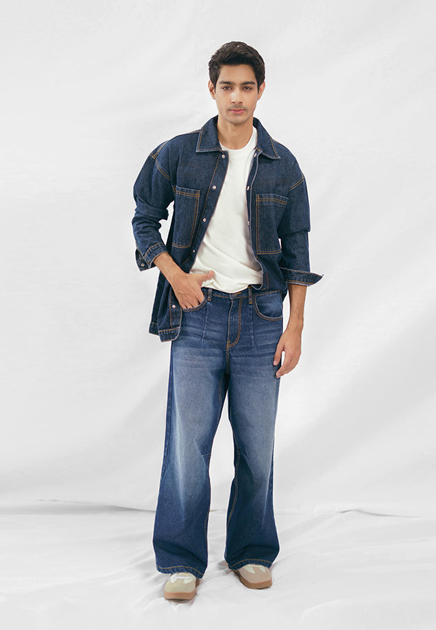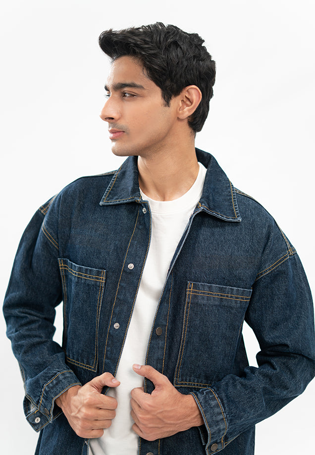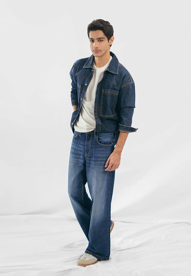 - Relaxed Fit Denim Shirt Long Sleeves With Buttoned Cuff.