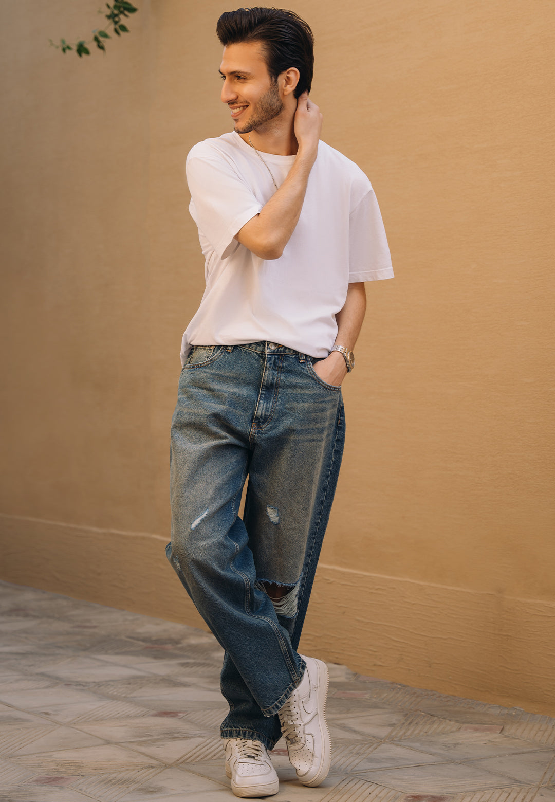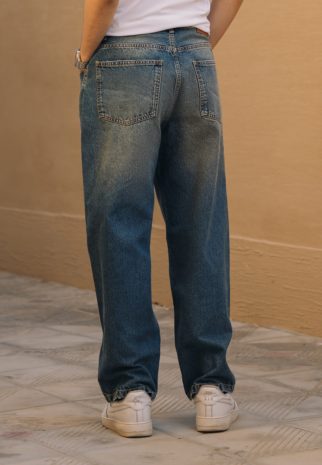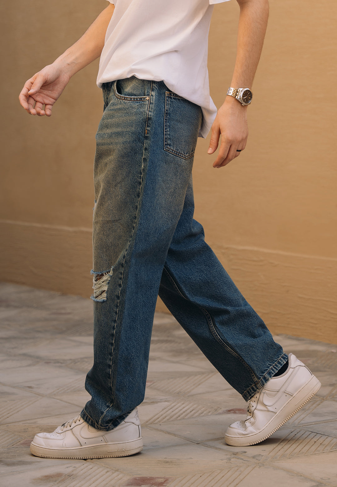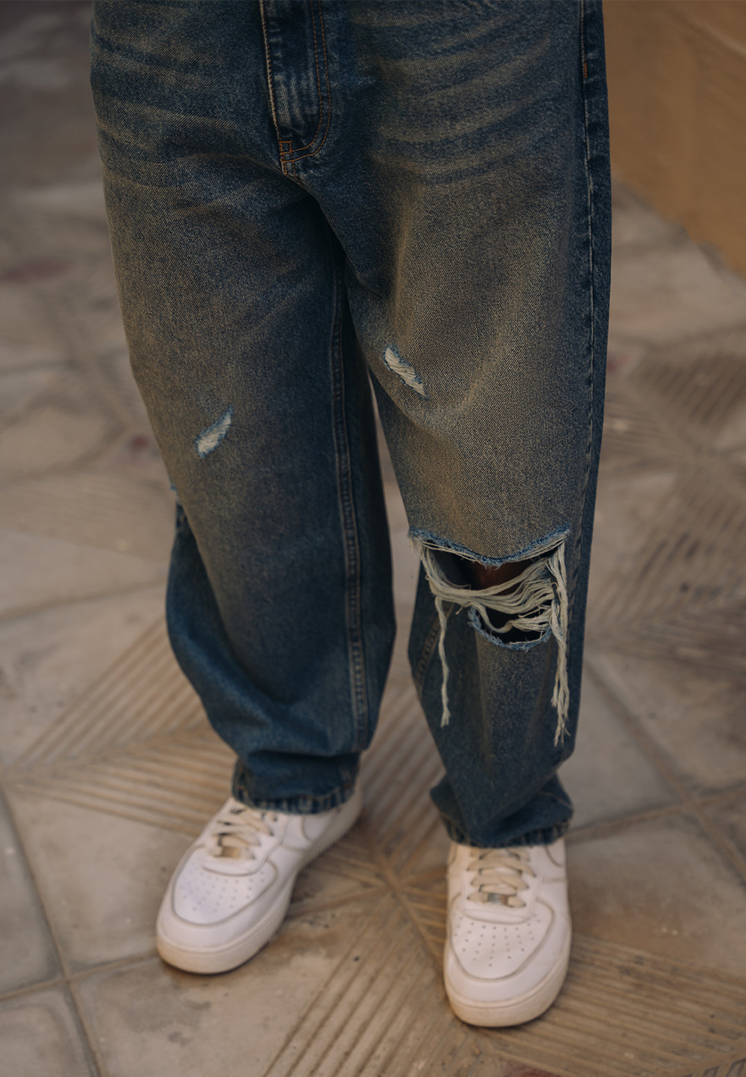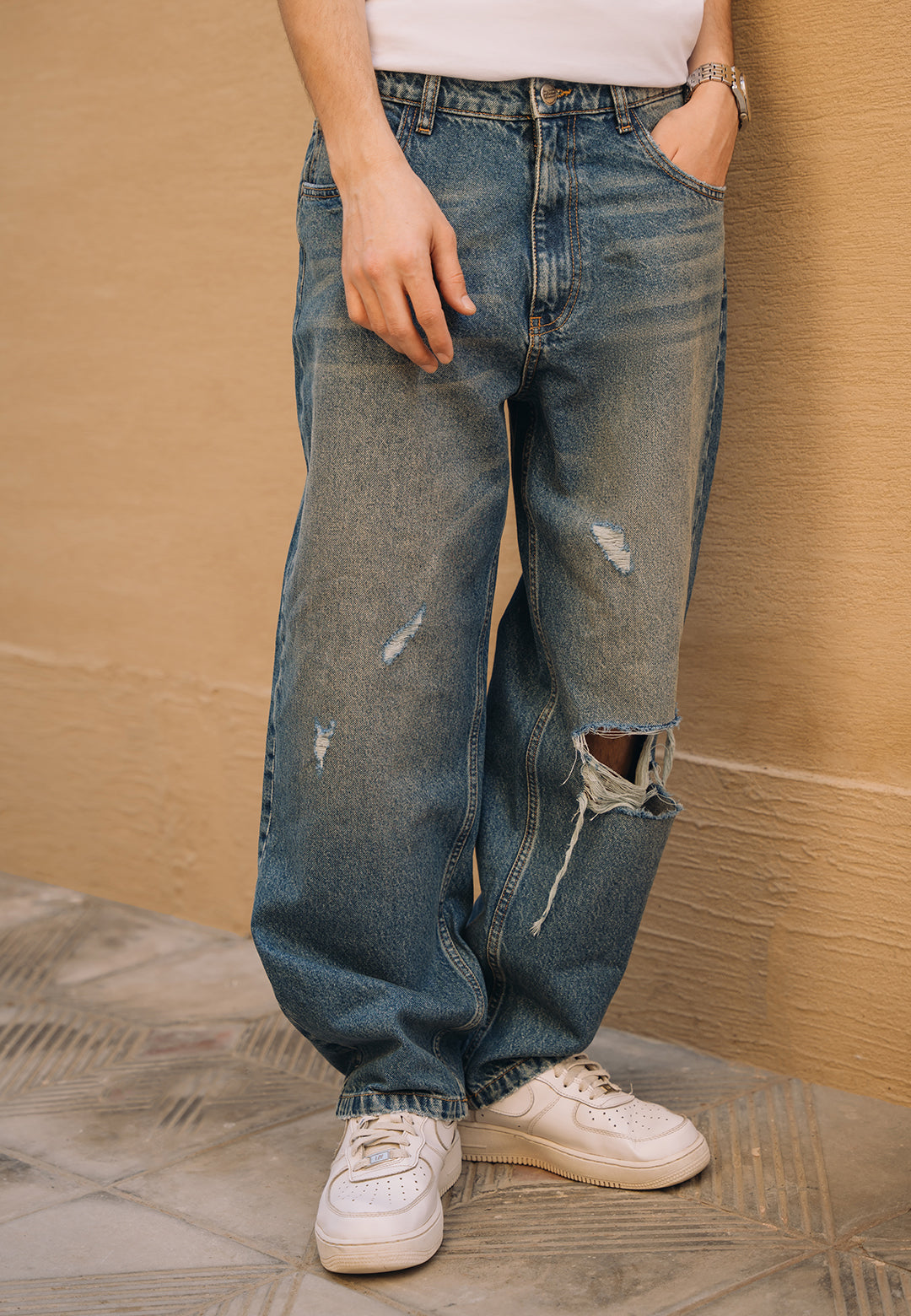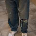 Hunain Abbas Ripped Baggy Fit Jeans - Tint Over Dyed