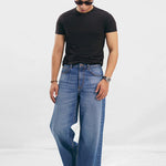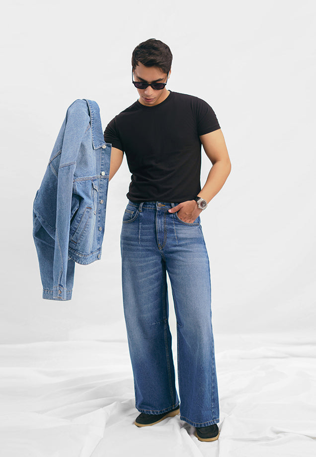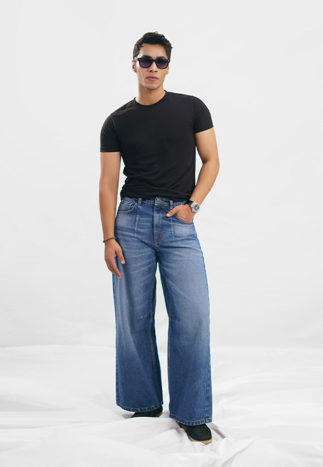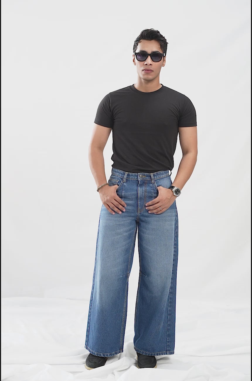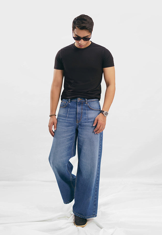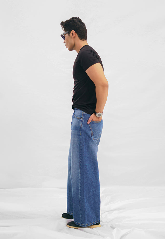 • Loose Fitting Jeans With Wide Leg Mid Rise